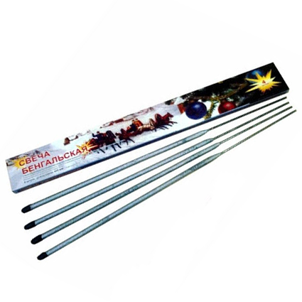 Большие бенгальские огни 650 мм это пиротехнические изделия бытового и развлекательного назначения. Длина одного элемента (бенгальской свечи) - 65 сантиметров. Каждая пачка - упаковка содержит 4 бенгальские свечи. Время горения одной бенгальской свечи около 5 минут.